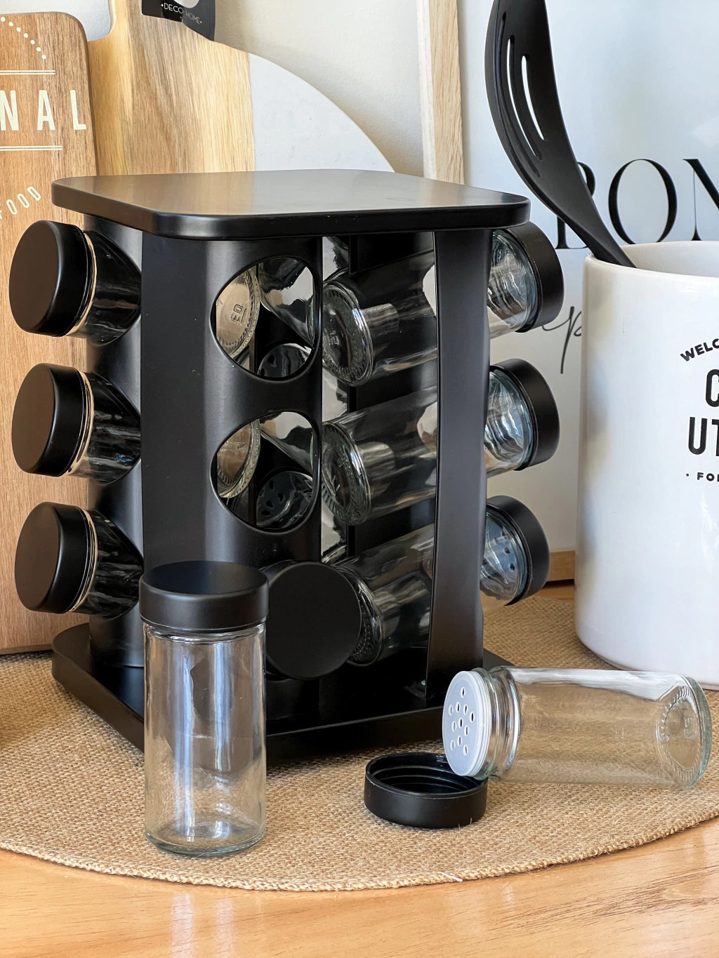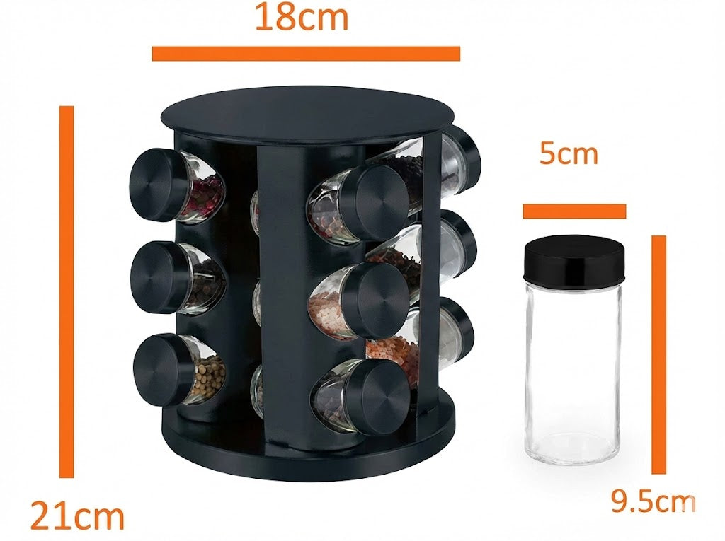 - Capacidad ideal: 12 frascos de 85ml para diferentes especias.